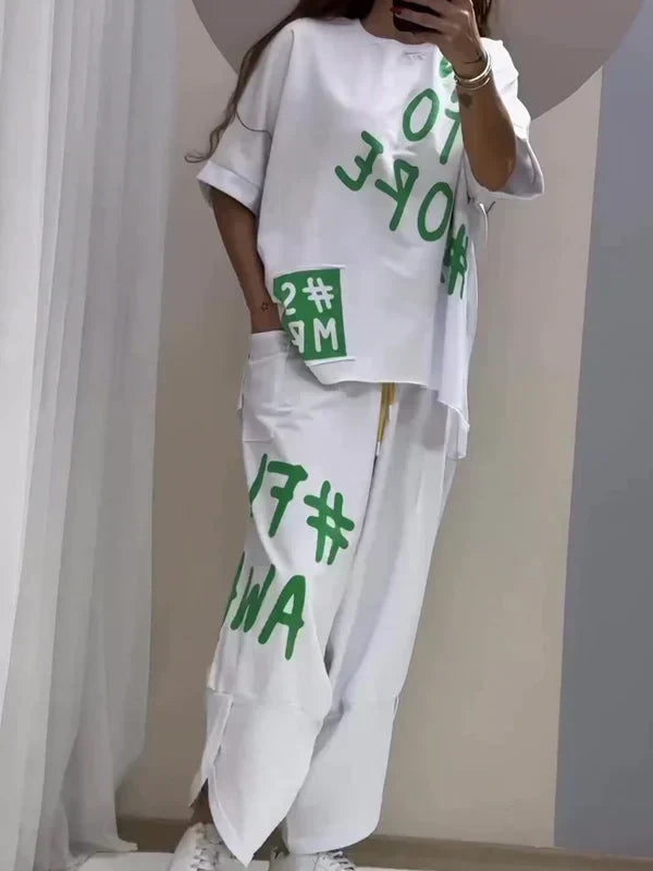 Desa™ Conjunto casual de dos piezas de cuello redondo con estampado