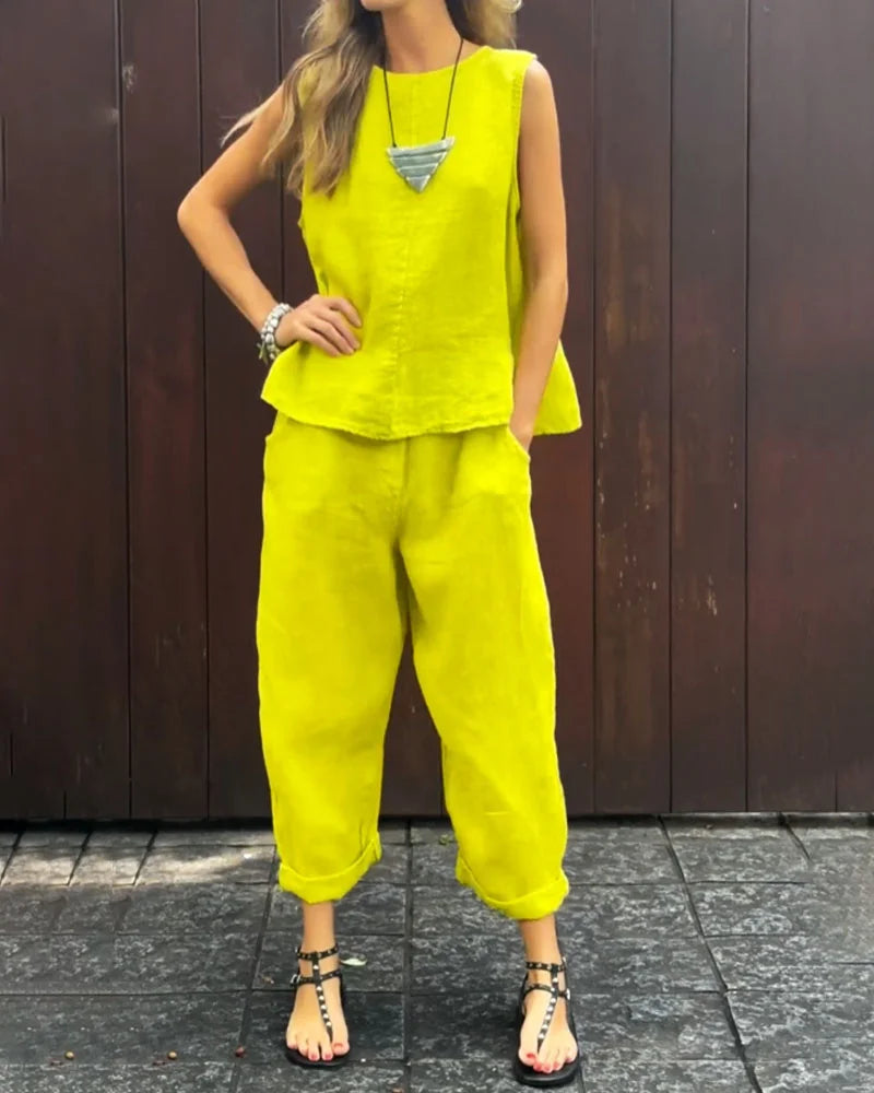 Mayte™ Conjunto casual elegante de dos piezas con chaleco y pantalones sin mangas