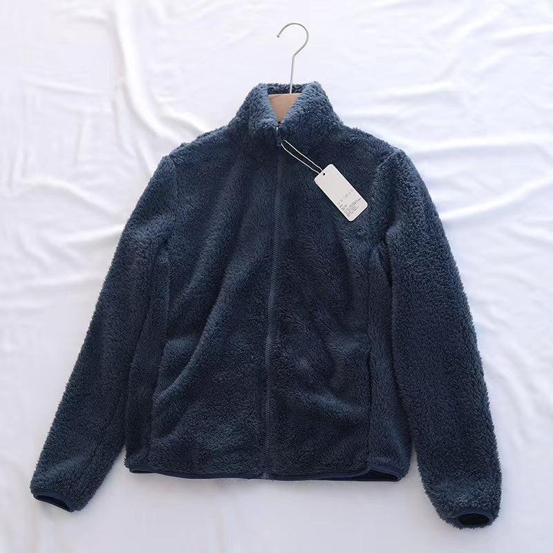 • Suave y cálida: Confeccionada con un tejido de felpa de alta calidad, esta chaqueta proporciona una sensación de abrigo excepcional, perfecta para los días fríos.