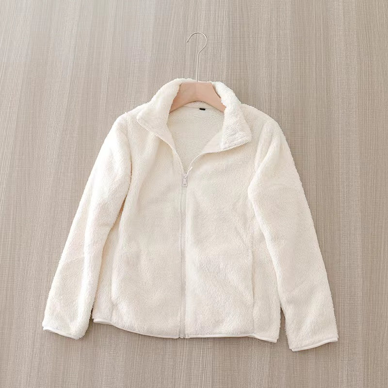 Descubre la perfecta combinación de suavidad y calidez con nuestra chaqueta de felpa de manga larga. Diseñada para ofrecerte comodidad y estilo, esta chaqueta es ideal para cualquier ocasión, ya sea para un paseo casual o para una salida con amigos.