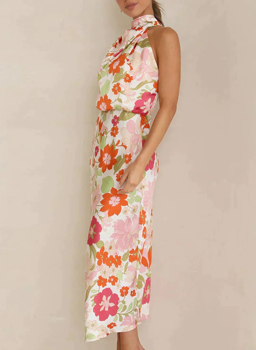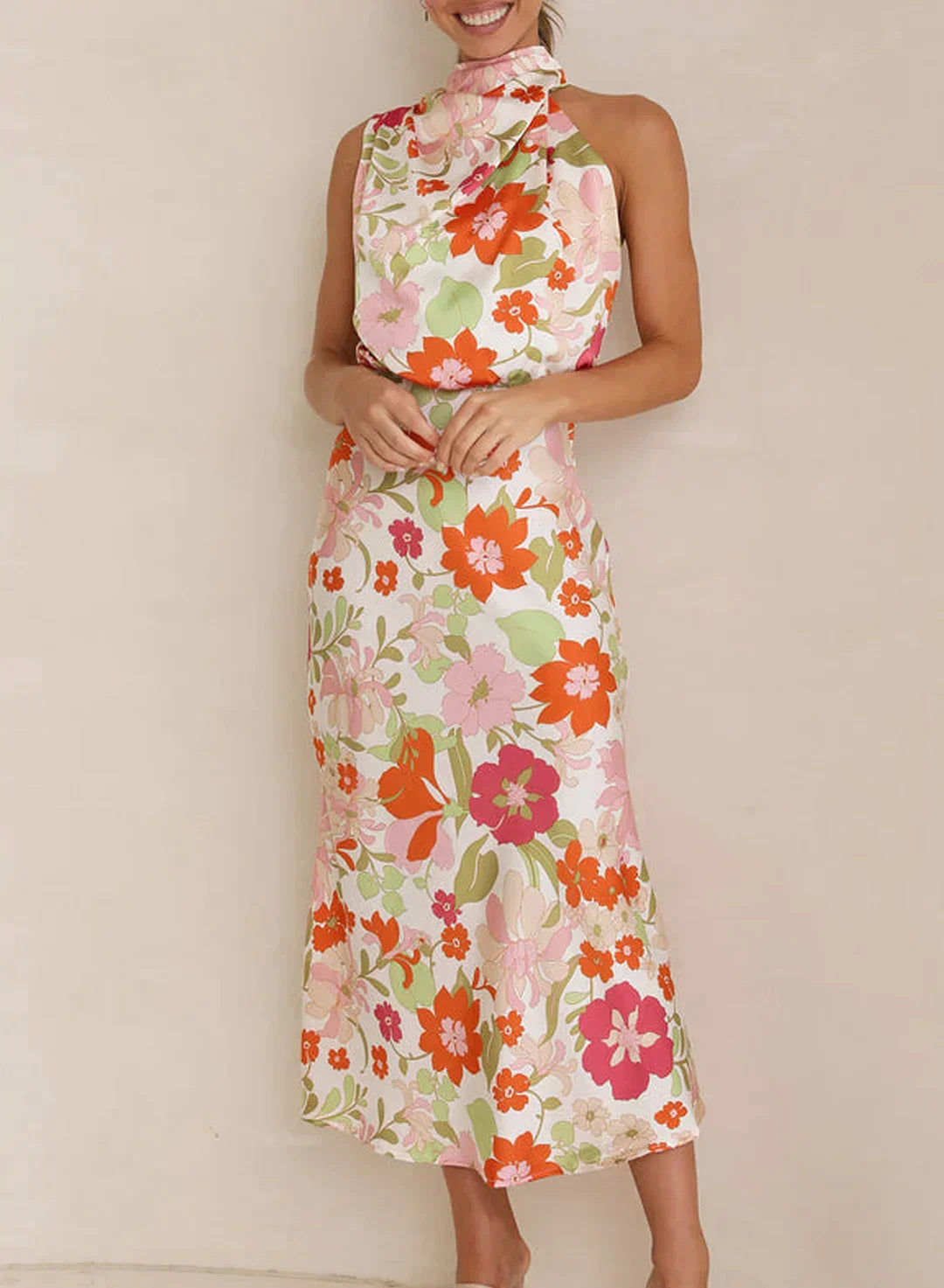 Diseñado para destacar en cualquier ocasión, este vestido te envolverá en un aura de sofisticación y feminidad. La silueta sin mangas en línea A del Vestido Lirio™ está meticulosamente adornada con un hipnotizante estampado floral. Cada detalle floral desprende un encanto cautivador, capturando la esencia de la feminidad con su delicadeza y gracia.